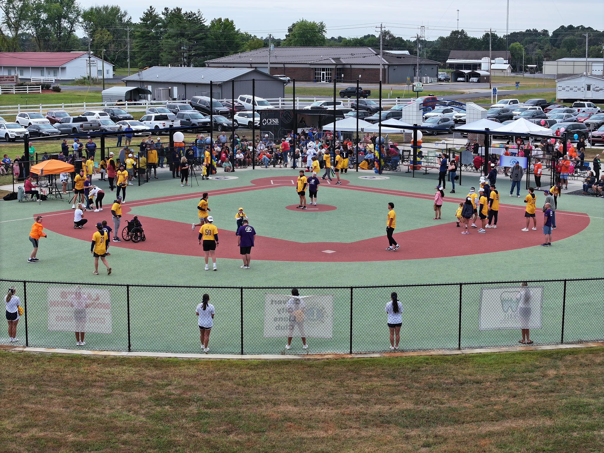 The Miracle League provides specialized baseball fields for children and adults with disabilities, featuring custom-designed, completely flat, rubberized turf surfaces to accommodate wheelchairs, walkers, and other assistive devices.
